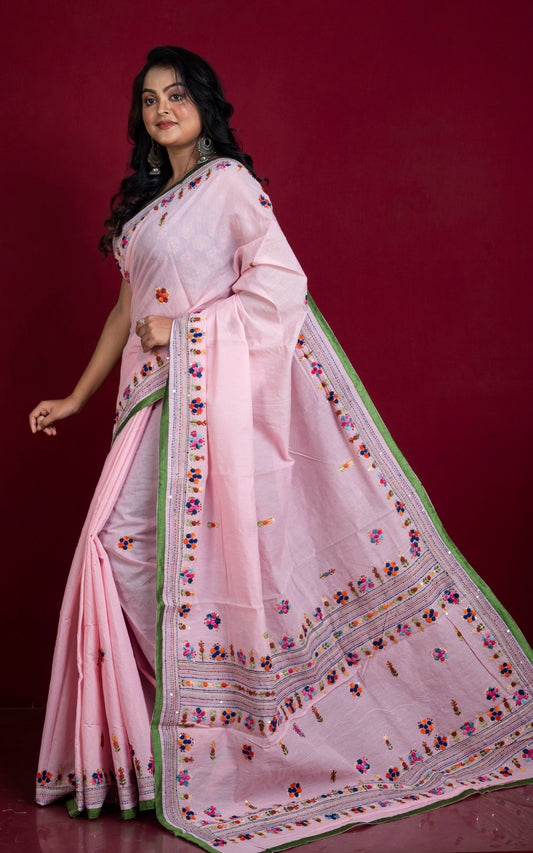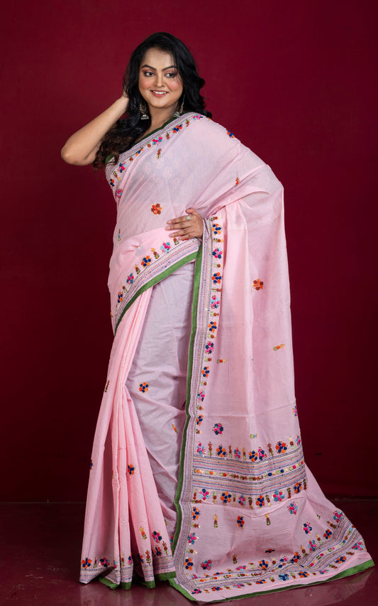 Embroidery Work Soft Kosa Silk Saree in Fuscia, Beige and Multicolored