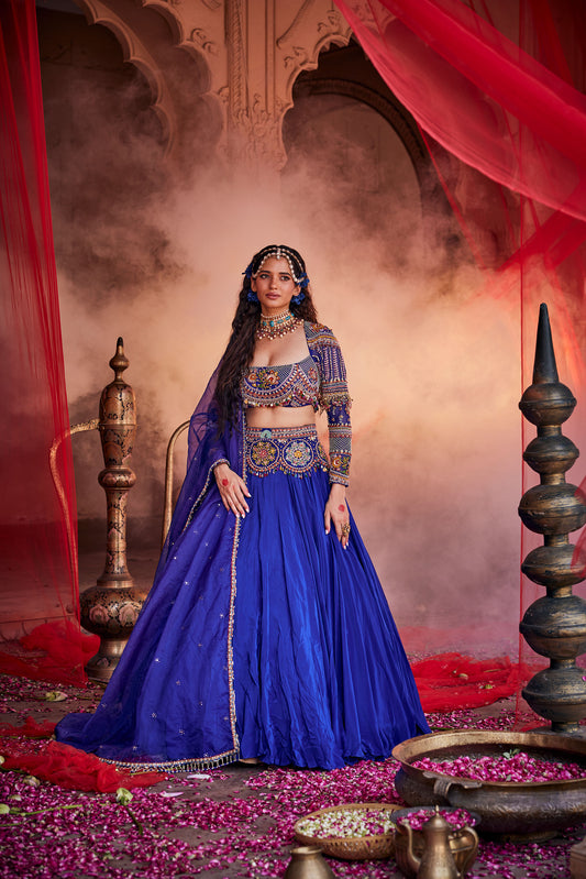 Rani Raw Silk Hand & Machine Embroidered Lehenga Set