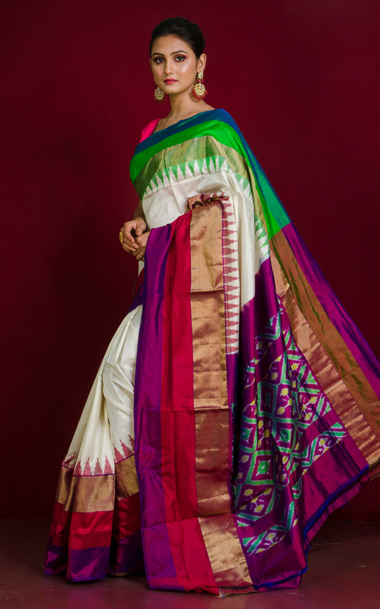 10% off availableBengal Handloom Satin Silk Border Cotton Saree in White and Deep Purple