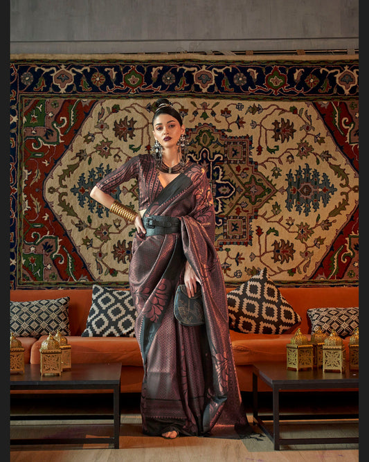 10% off availableGrey and Pink Linen Silk Woven Saree