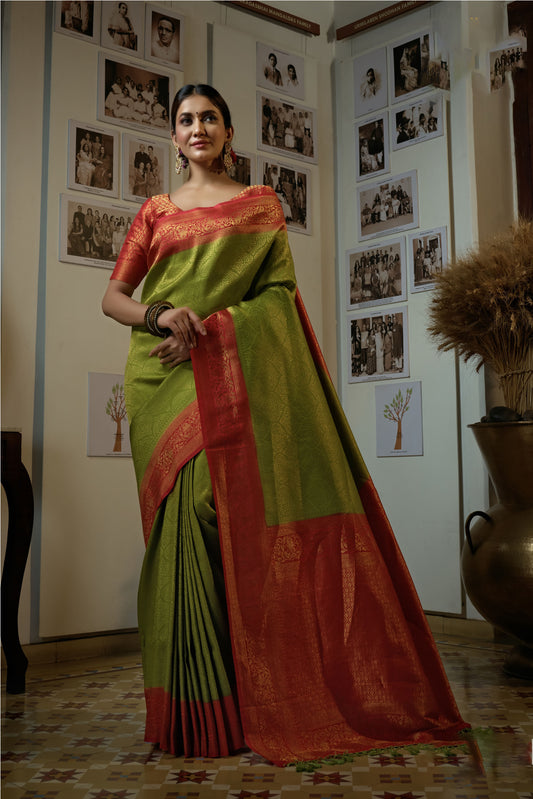 10% off availableLeaf Green Kanjivaram Silk Saree