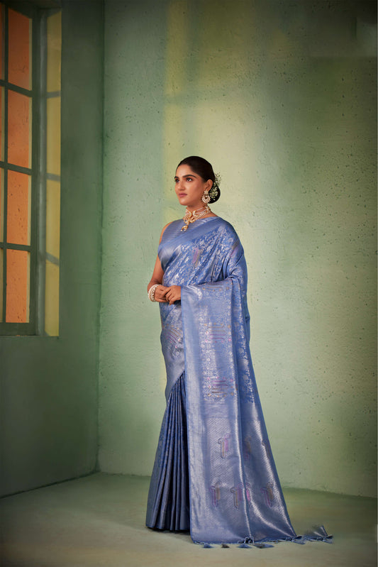 10% off availableLight Blue Color Gold Zari Kanjeevaram Silk Saree