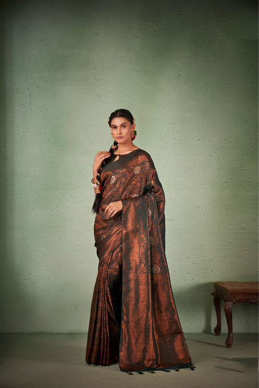 10% off availableGreen Color Gold Zari Kanjeevaram Silk Saree