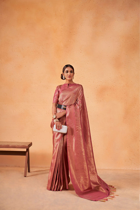 10% off availablePretty Pink Woven Silk Banarasi Saree