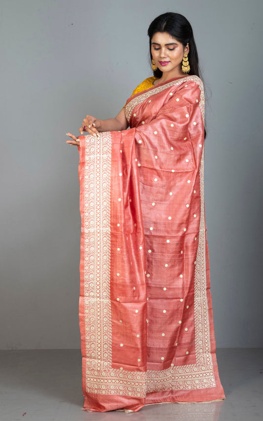 Pink Chanderi Hand Embroidered Vastralekha Saree