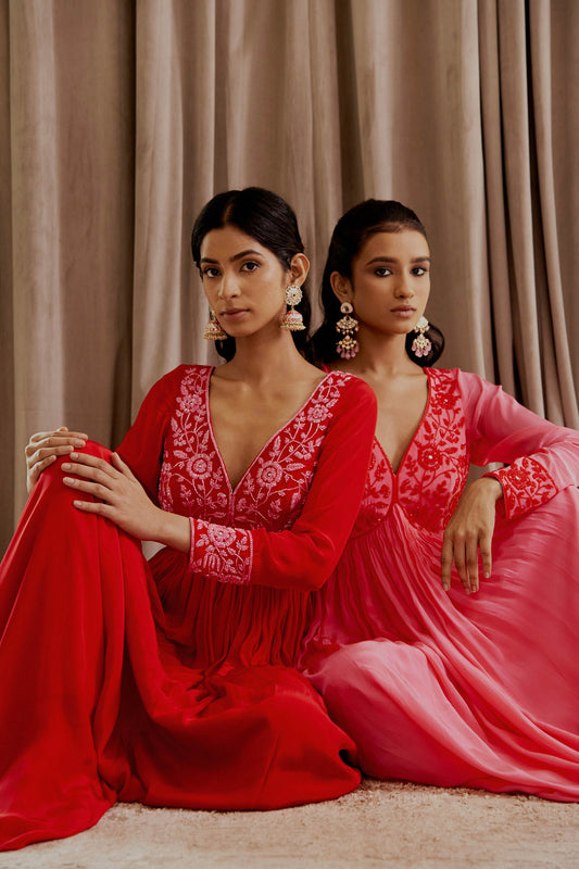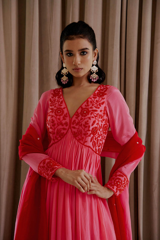 Pista Hand embroidered Georgette kurti and crepe salwar