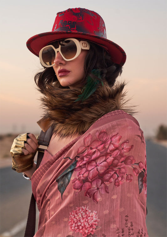 10% off availablePink Krystal Lotus Tussar Handloom Saree
