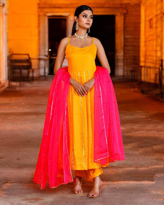 Orange Gota & Sequins Lace Work Kurta & Chiffon Dupatta Set