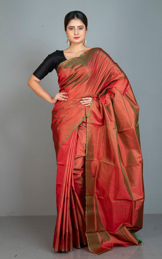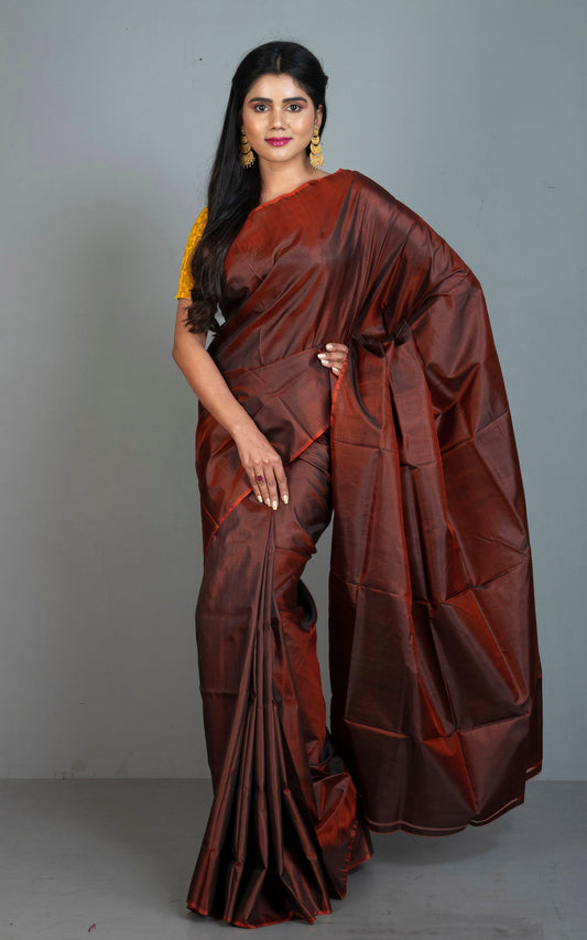 Premium Quality Double Warp Soft Pure Cotton Banarasi Saree in Dark Maroon, Red and Copper Zari Work