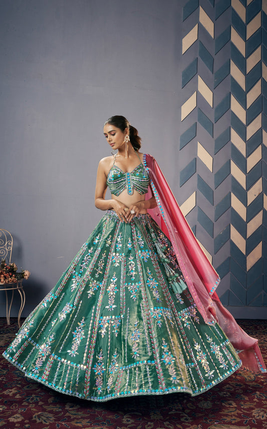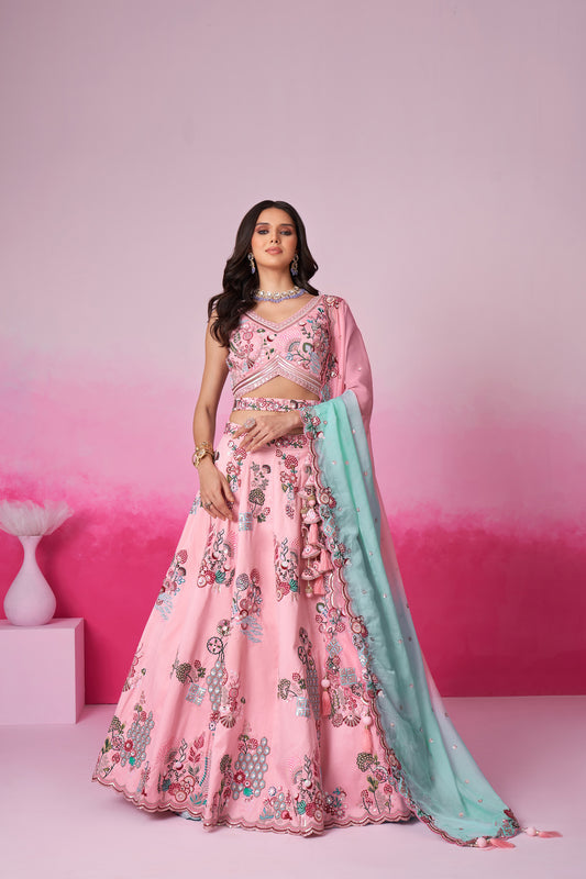 Candy Pink Hand Embroidered Chanderi Silk Lehenga Set