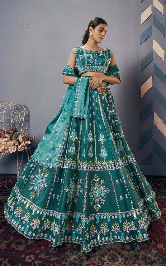White Resham Embroidered Silk Organza Designer Lehenga Set