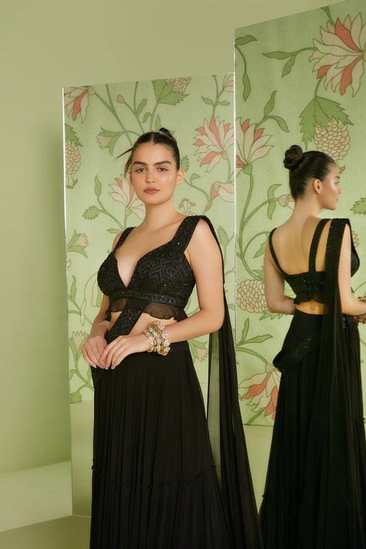 Burgundy Pure Grorgette Sequins and thread embroidery Lehenga choli