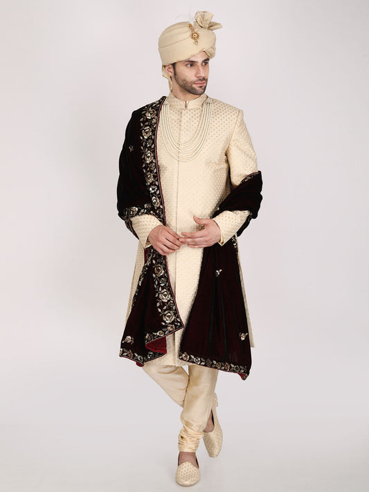 Gold Colored Art Silk hand embroidered Sherwani Set