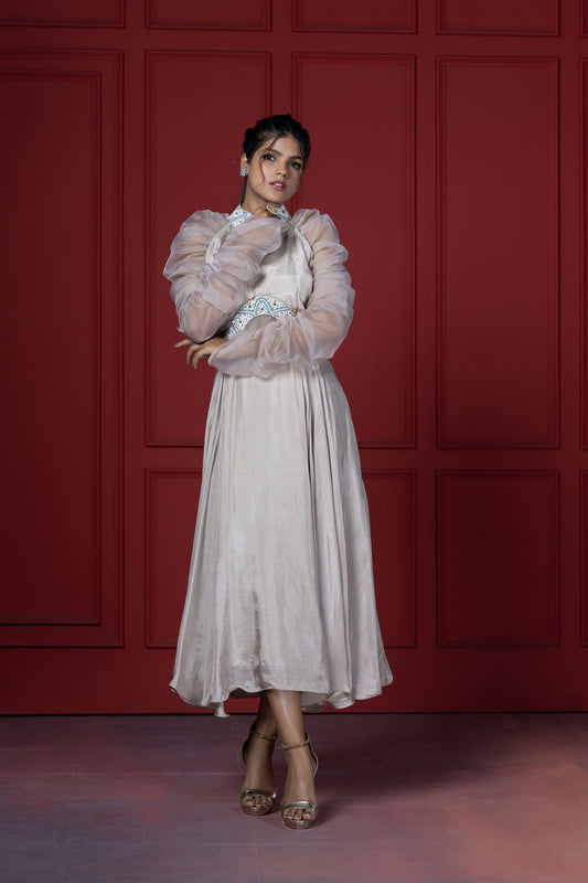 Frosty Slate Silver Tulle Bride's Sangeet Gown