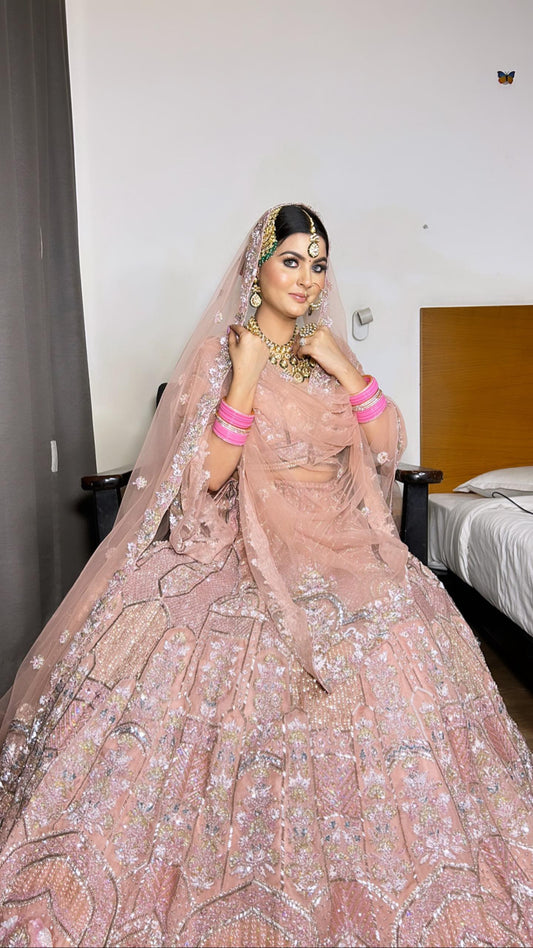 Bridal lehengas hold immense significance in Indian weddings. While red continues to be a traditional favorite, brides have the option to choose from hues such as pastel colors or peach to suit their skin tone and personal preferences. These stunning Indian bridal lehengas are meticulously crafted to enhance the bride's beauty and radiance on her special day.