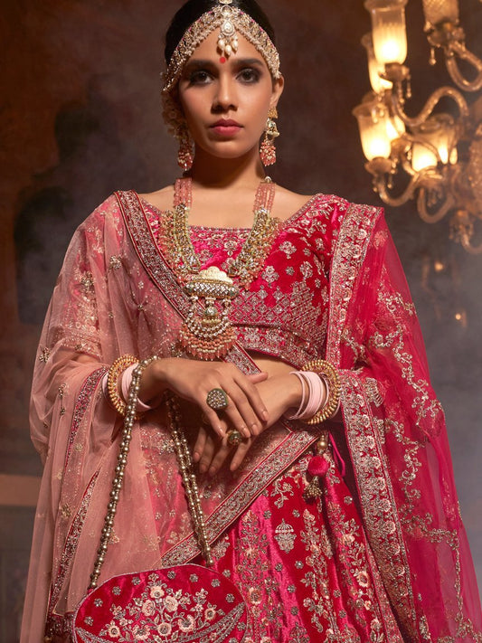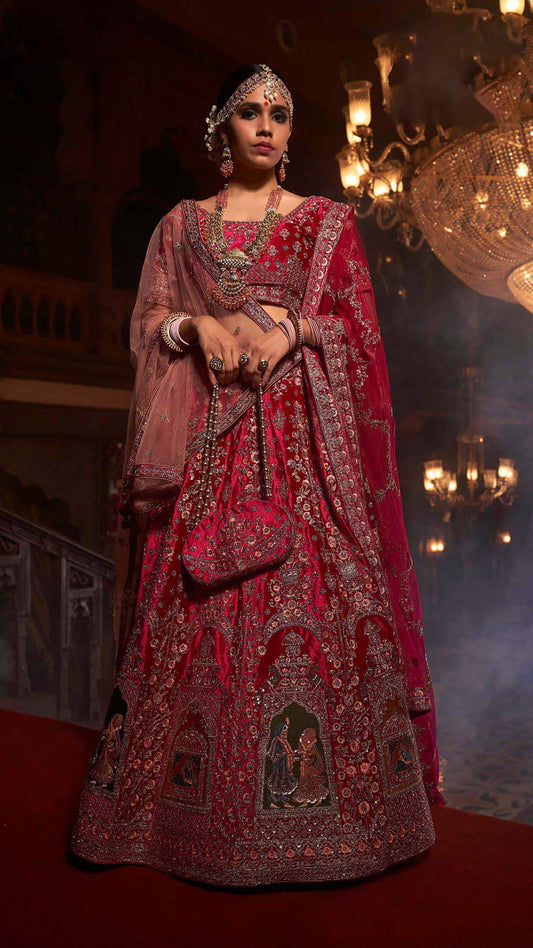 Red Velvet Bridal Lehenga With Hand Embroidery