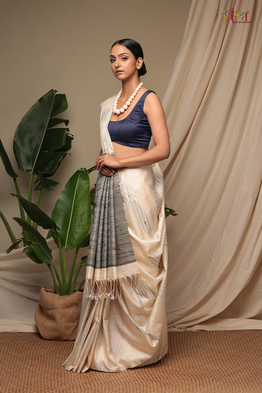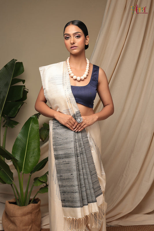 - The saree body and the pallu (the end piece) are often woven separately and then interlocked.