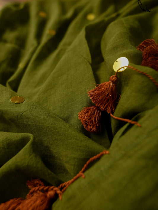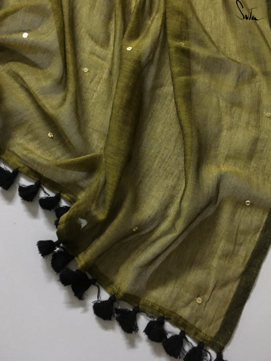 Green Tissue Sequinned Embroidered Ready to Wear Lehenga for Mehendi