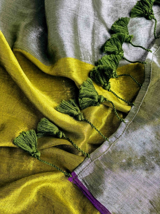 Green Raw Silk Zari & Resham Embroidered Mehendi Lehenga