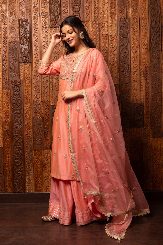Ek Baag Peach Pure chanderi Kurta set