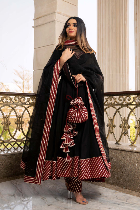 Ganguar Hina Black and Maroon Anarkali Set