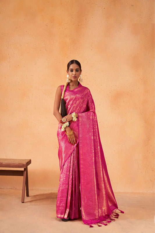 out of stockPink Organza Zari Woven Silk Saree