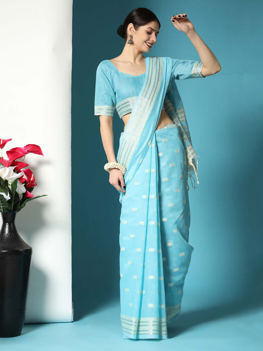 out of stockSky Blue Color Gold Zari Kanjeevaram Silk Saree