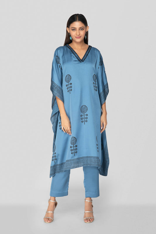 out of stockCommand Blue Hand Block Printed Kaftan Set
