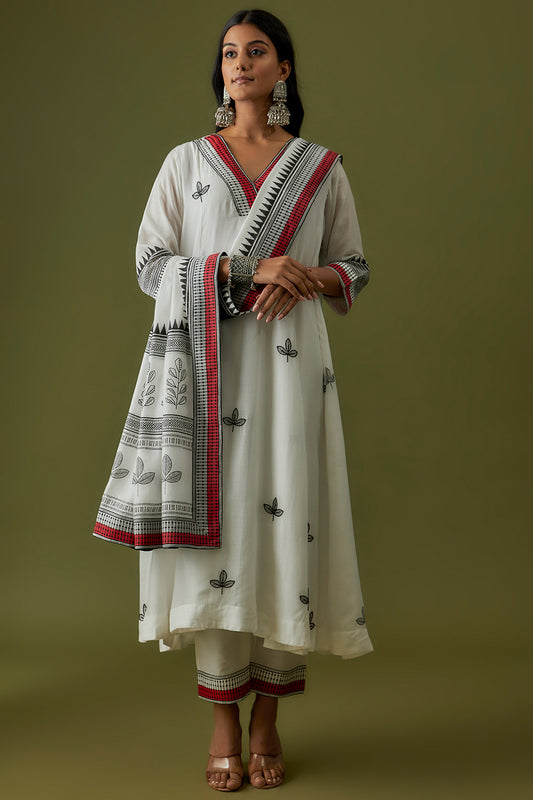 Hand Block Printed And Embroidered Leaf Motif Kurta Set