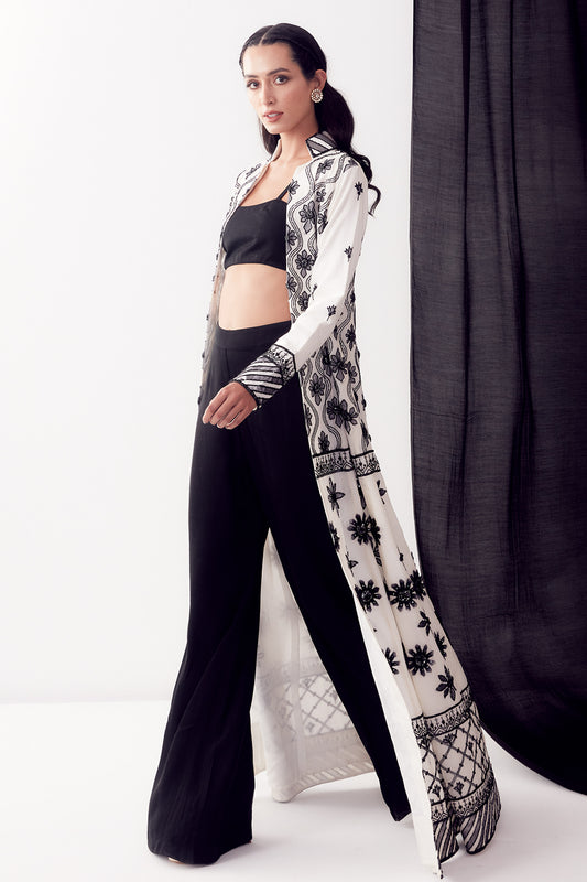 out of stockBlack & White Applique Work Jacket Set - Aarambh