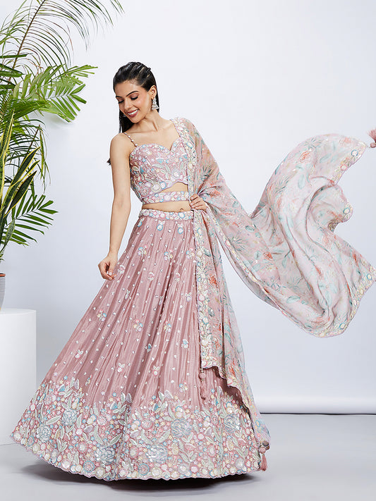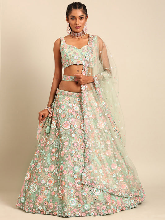 Sky Blue Elegant Multi Sequins Embroidery Work Lehenga