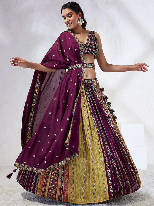Maroon Color Velvet Sequins Embroidery Lehenga