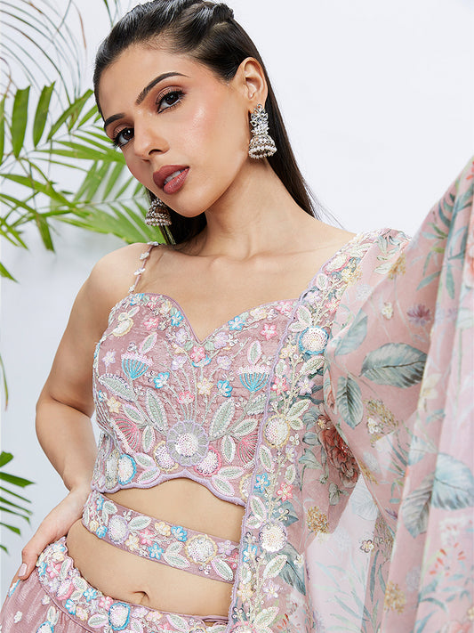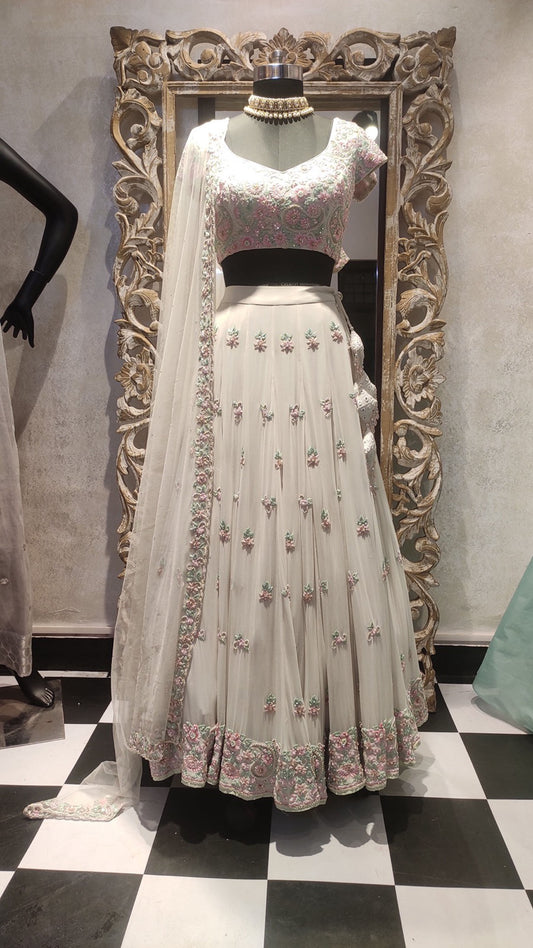 Grey Floral Designer Zari Embroidery Lehenga Choli