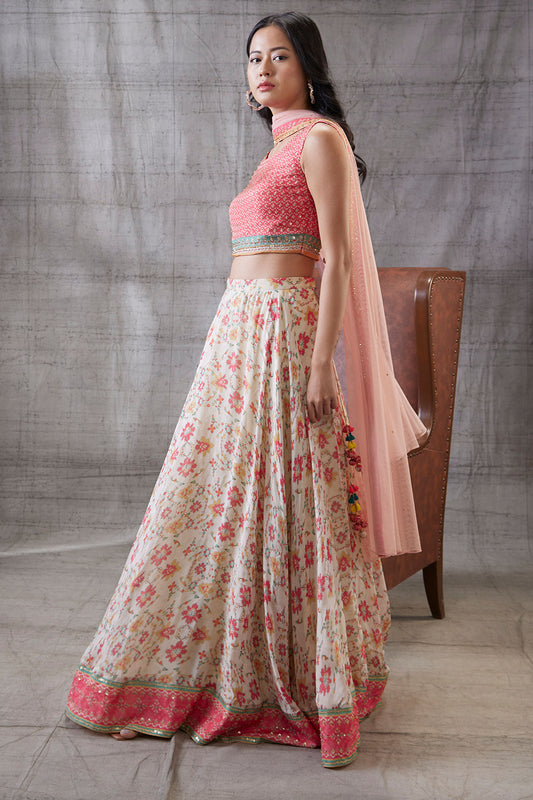 Gulzar Orange Printed Satin Georgette Lehenga And Dupatta