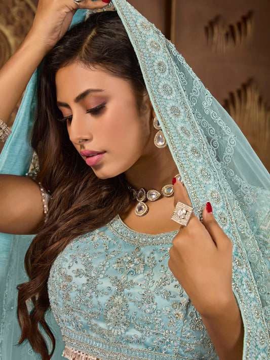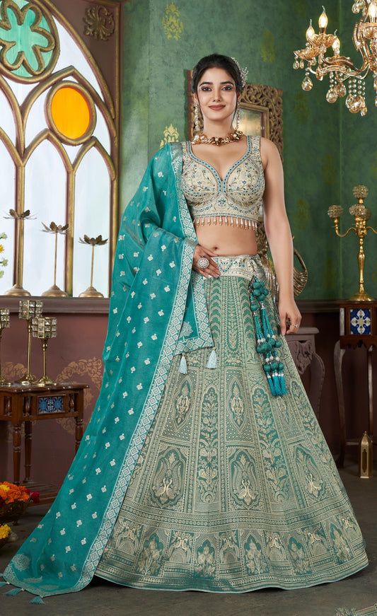 Sea green colour Tissue Sequinse embroidery Lehenga choli & Dupatta