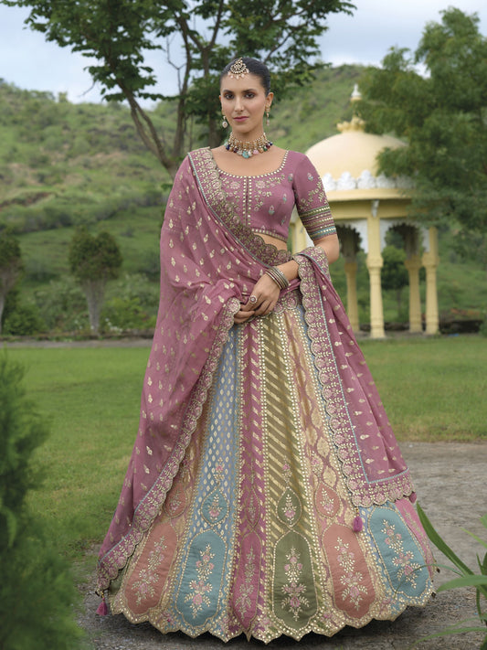 Lavender Khatli and Sequence Embroidery Silk Bridal Lehenga