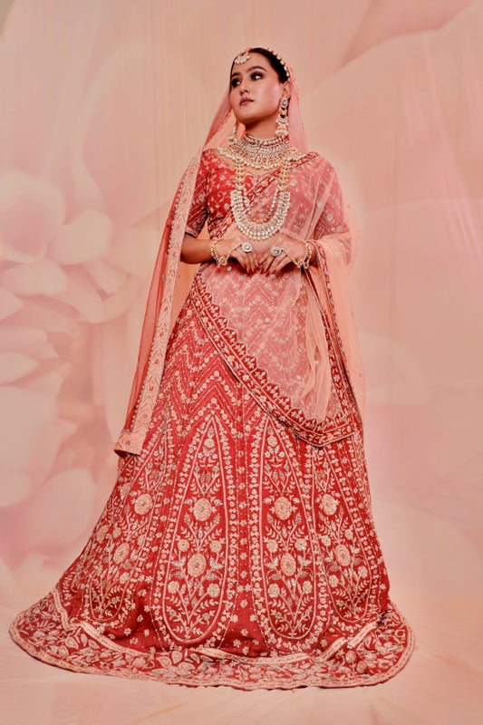 Red Hand Embroidery Silk Bridal Lehenga for Wedding