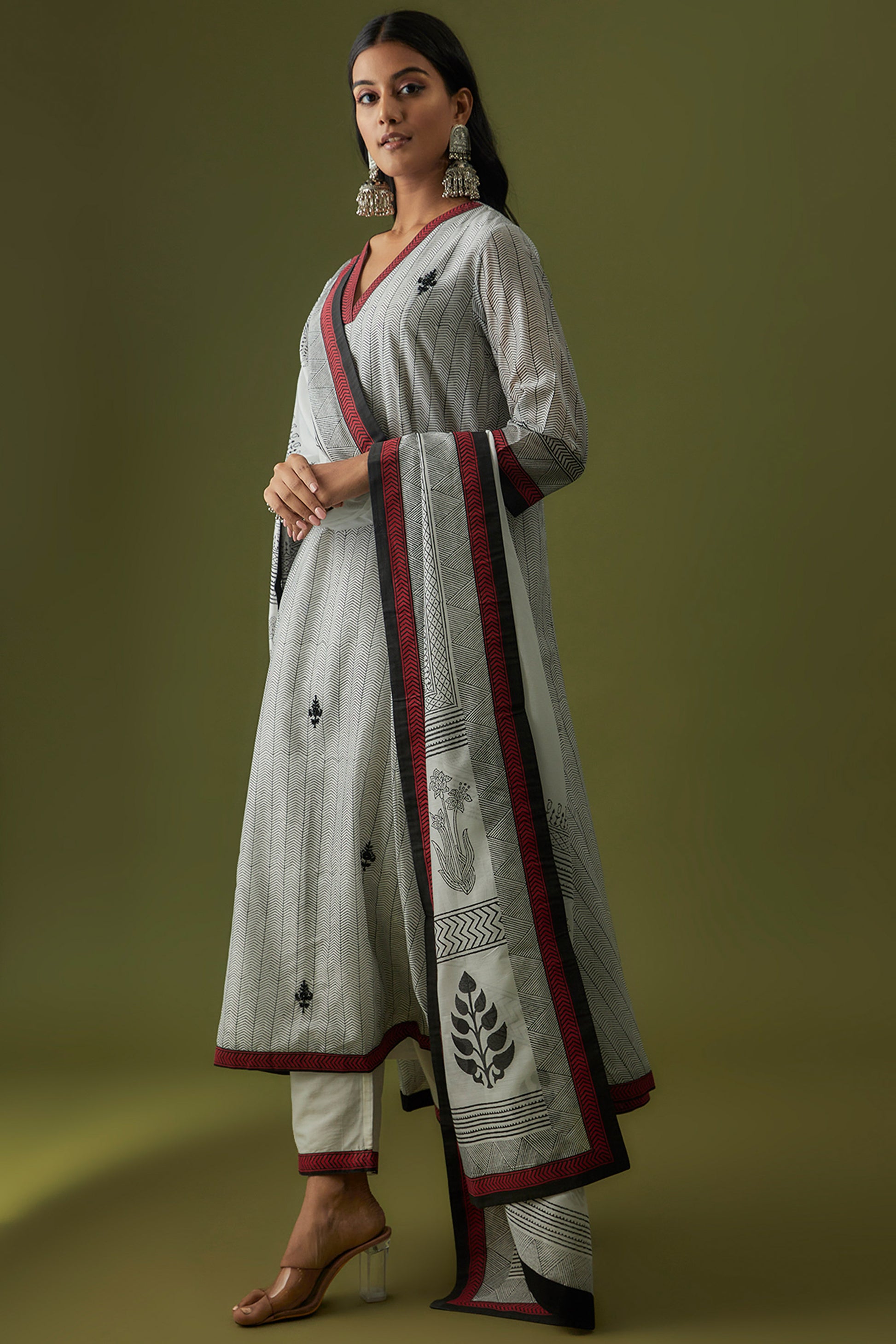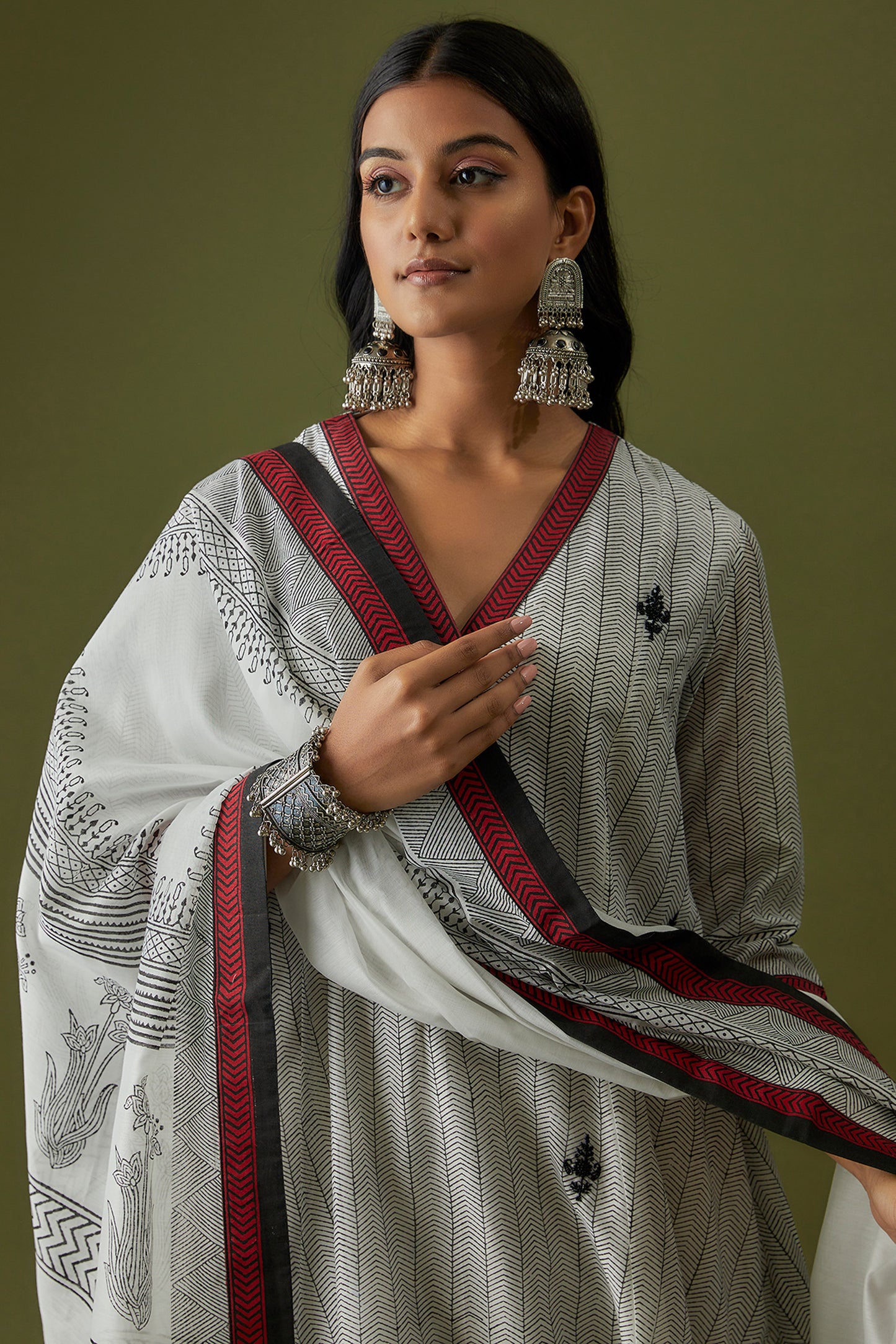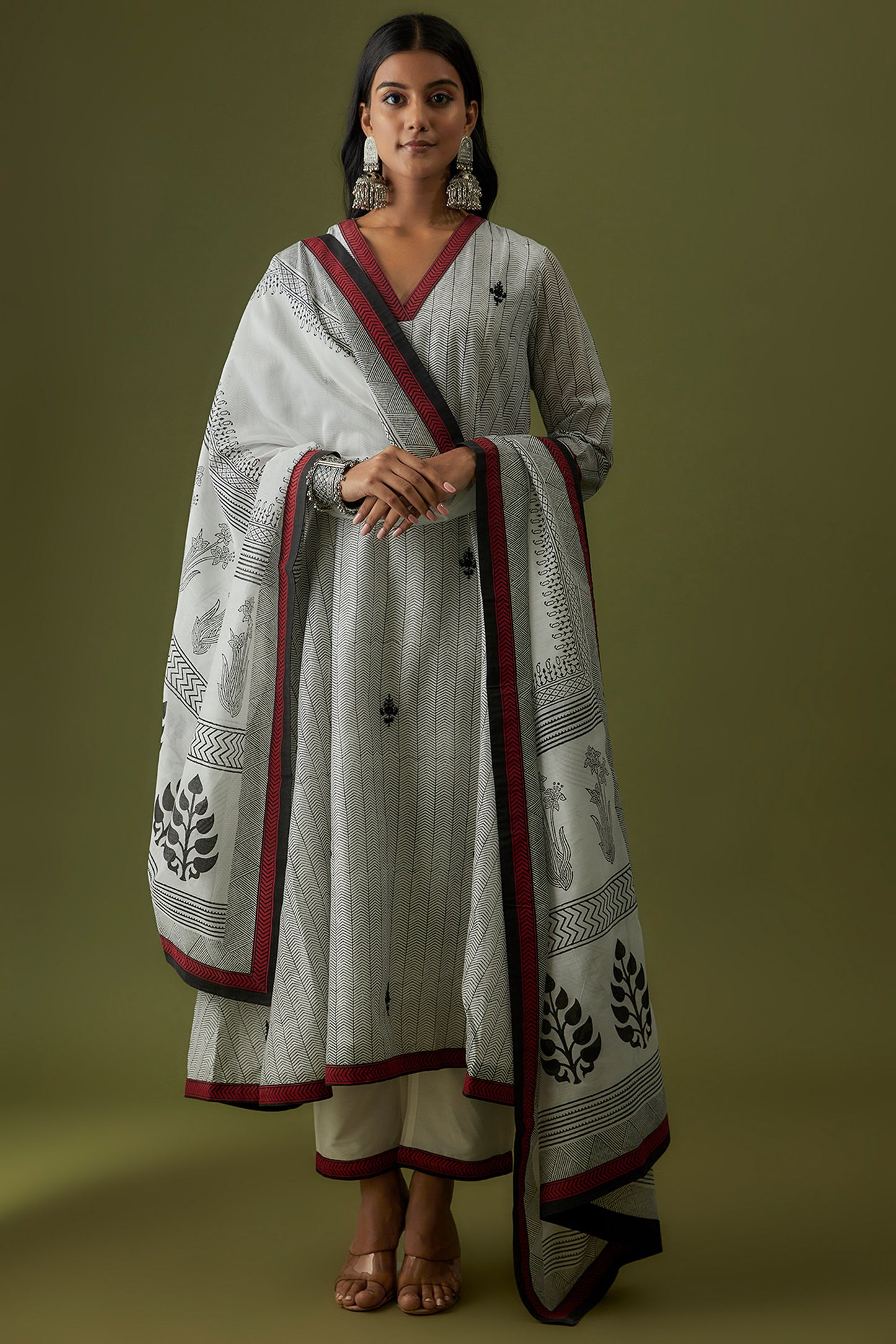 All Over Hand Embroidered Motif Cotton Silk Kurta Pant Set