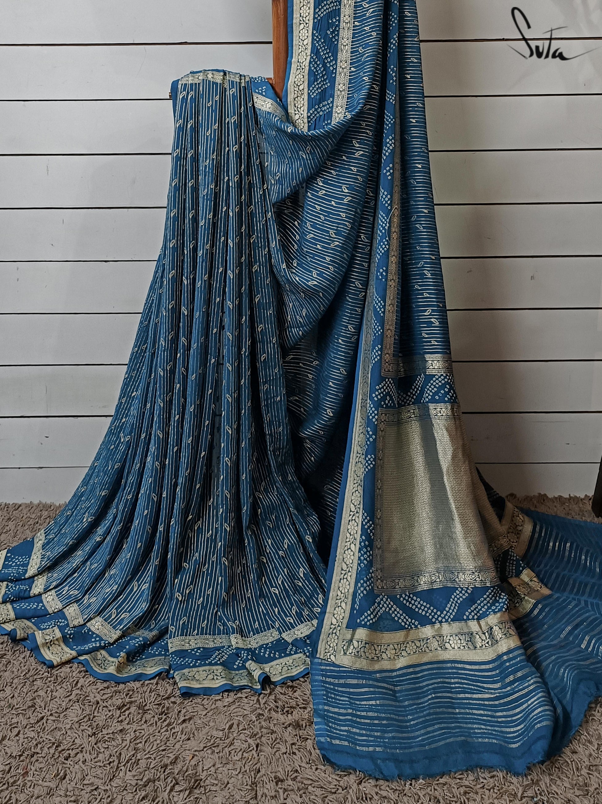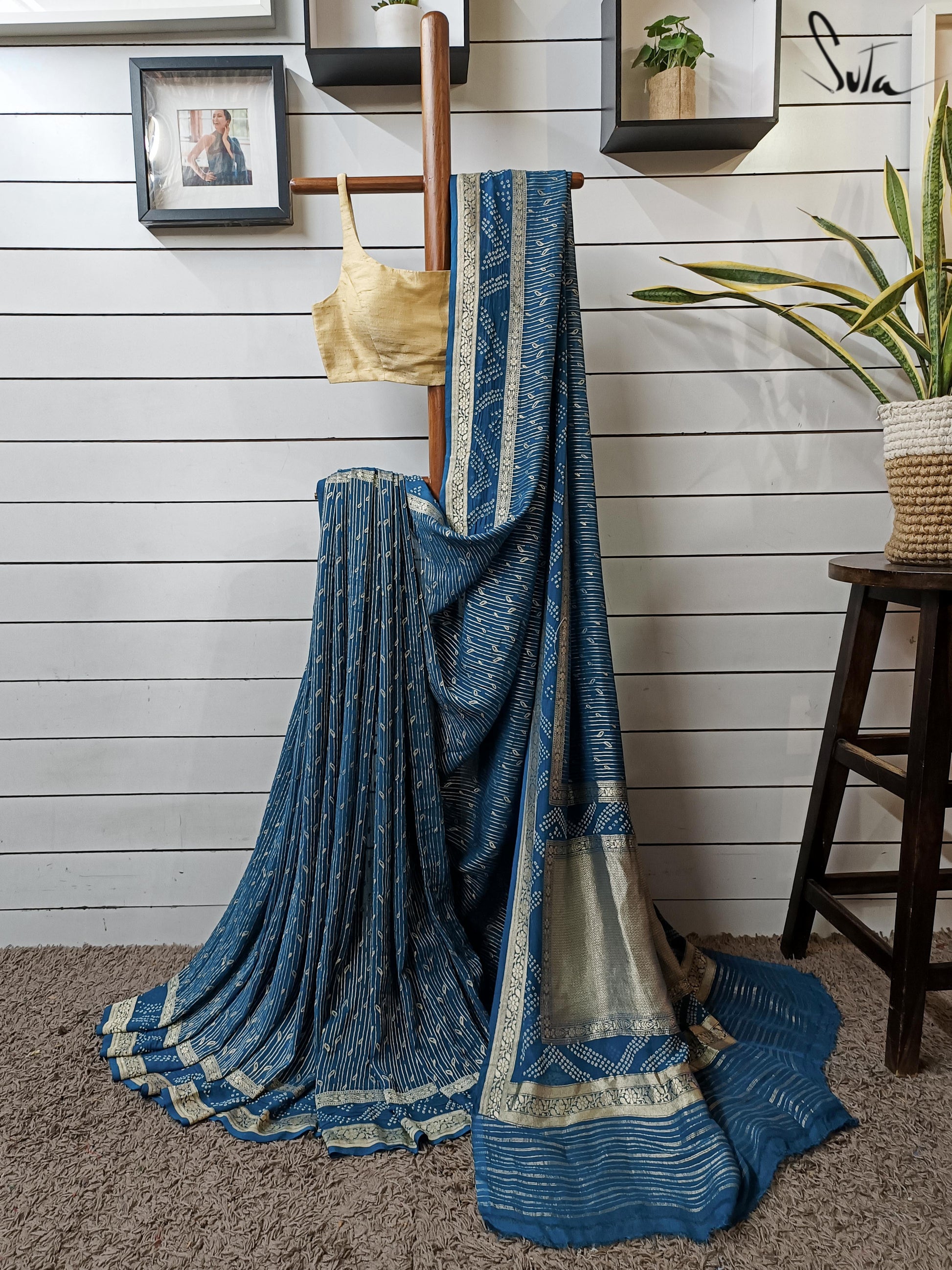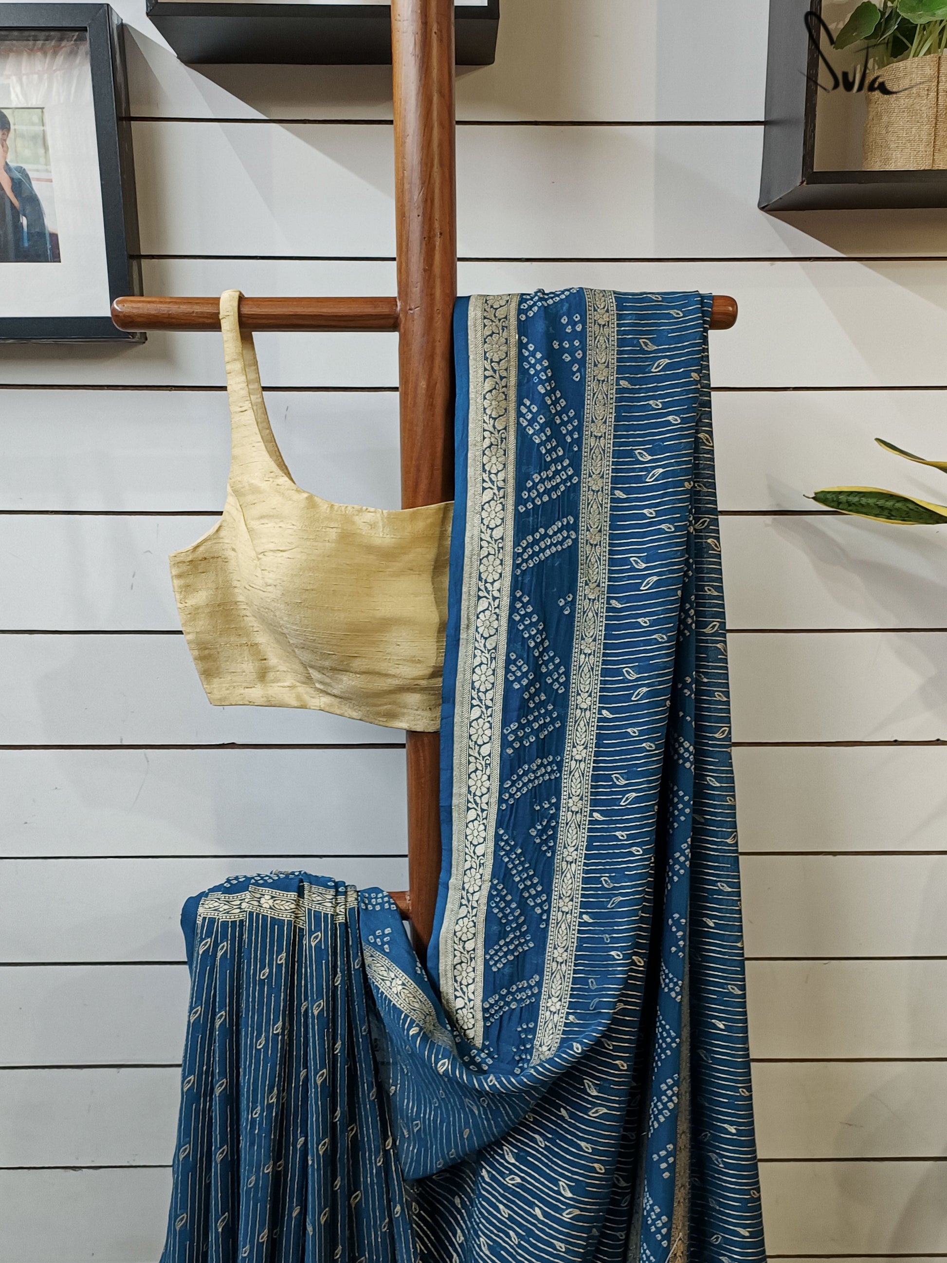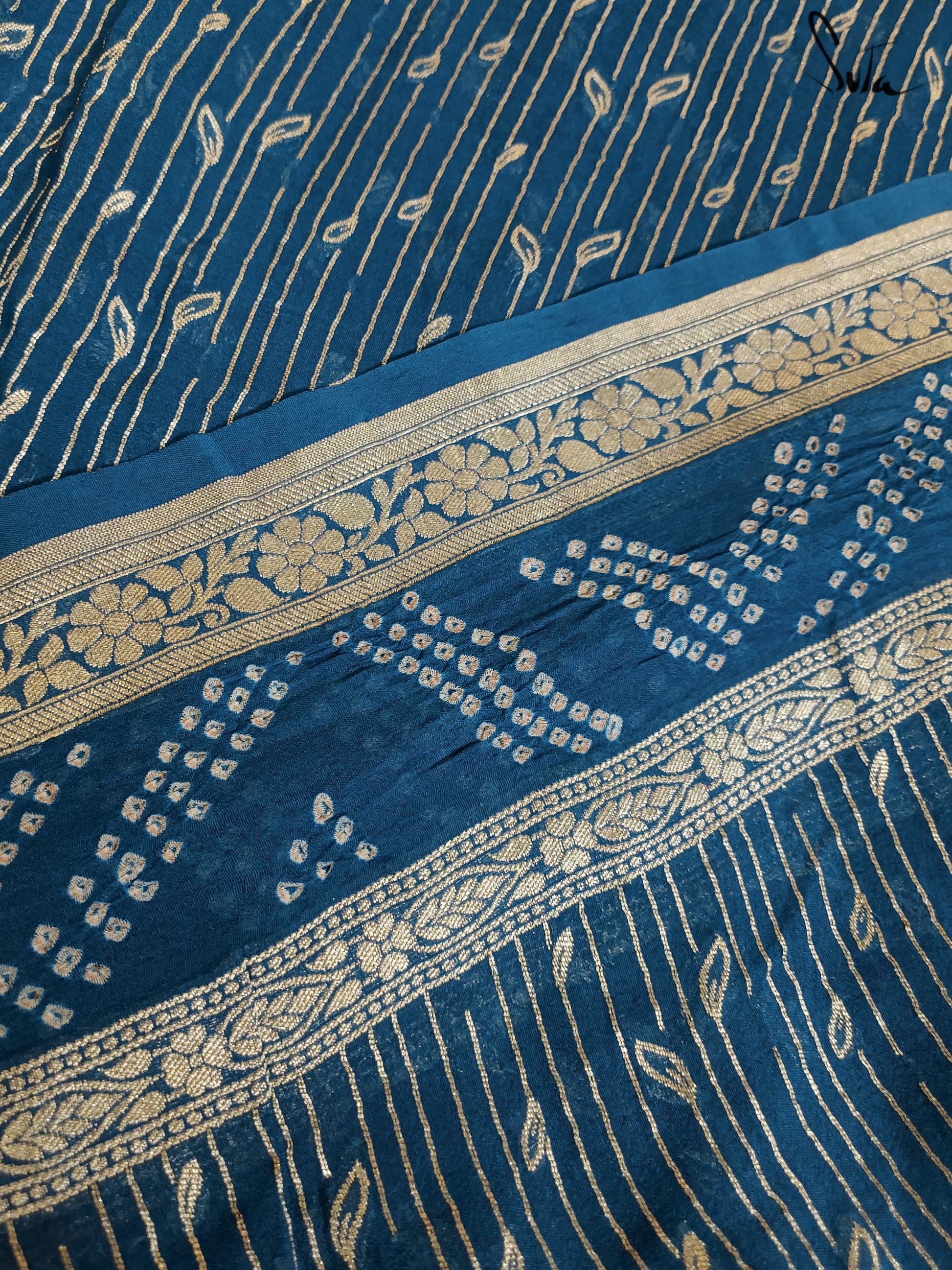 Fabric: Leaf Border Bandhani Silk Georgette with Zari