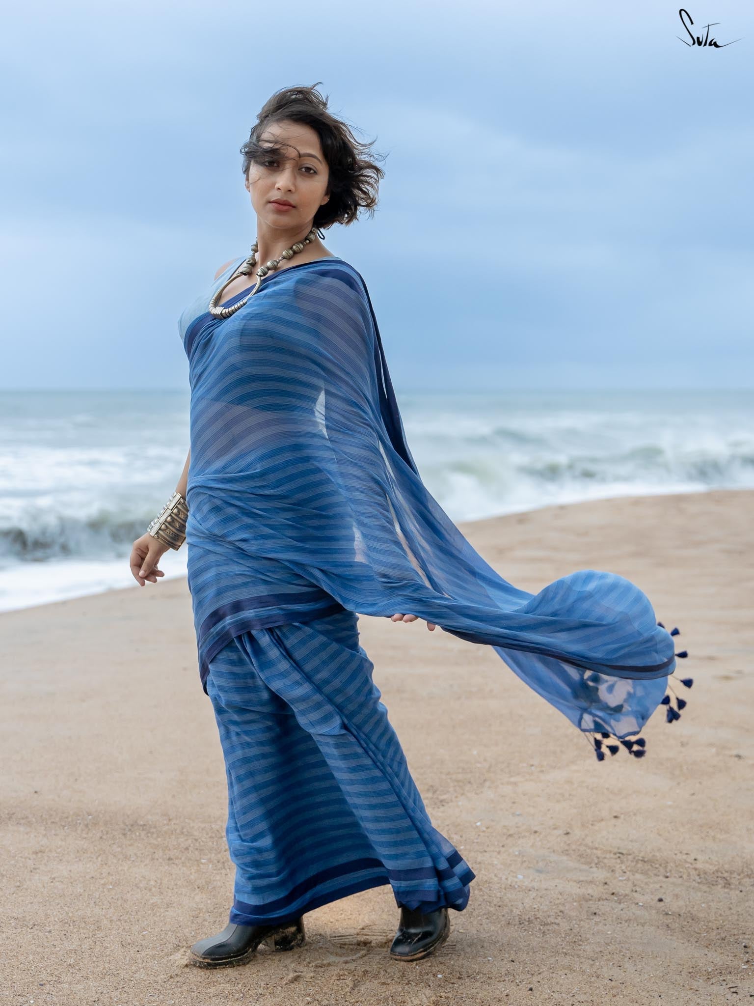 Designers at Suta made it a personal mission to add details that enhance the character and induce a sense of mystery into the first saree of this collection.