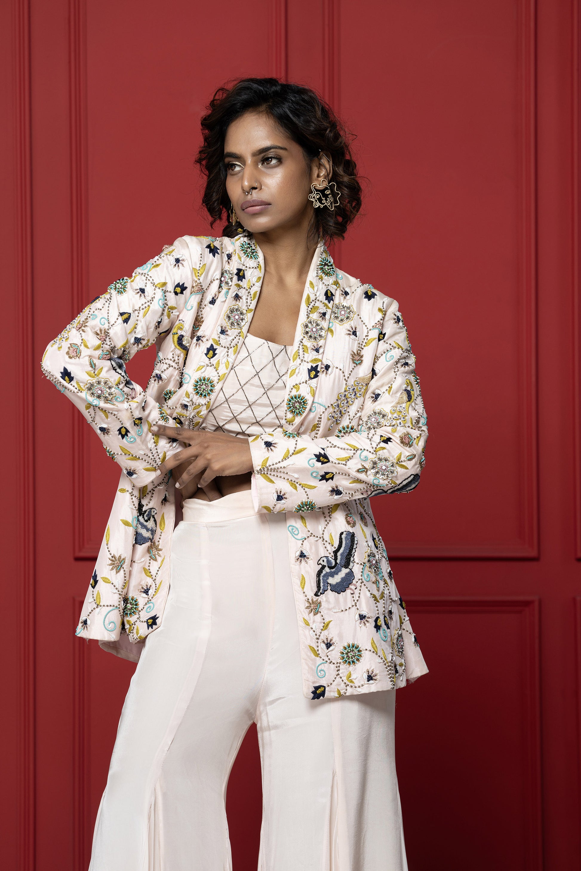Embroidered Blazer with Spaghetti & Plain Palazzo