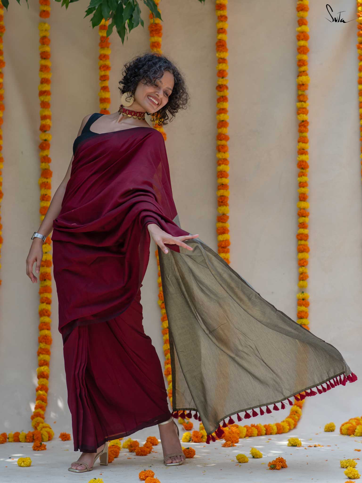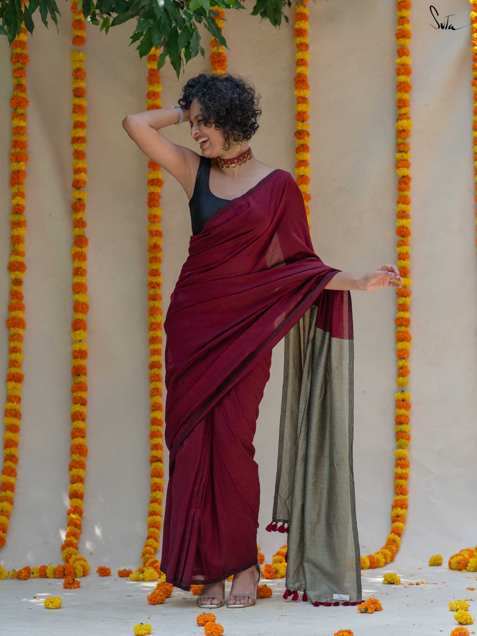 Cotton fabric dates back to some of the most ancient civilisations and it has a strong presence in the modern wardrobe as well. The softness and lightness of cotton combined with its strength and versatility makes it one of the most popular choices, especially for the Indian climate. We took this simple, elegant fabric and combined it with acrylic for that added sheen and voila! We love what we see and the saree falls so beautifully that it feels like second-skin!