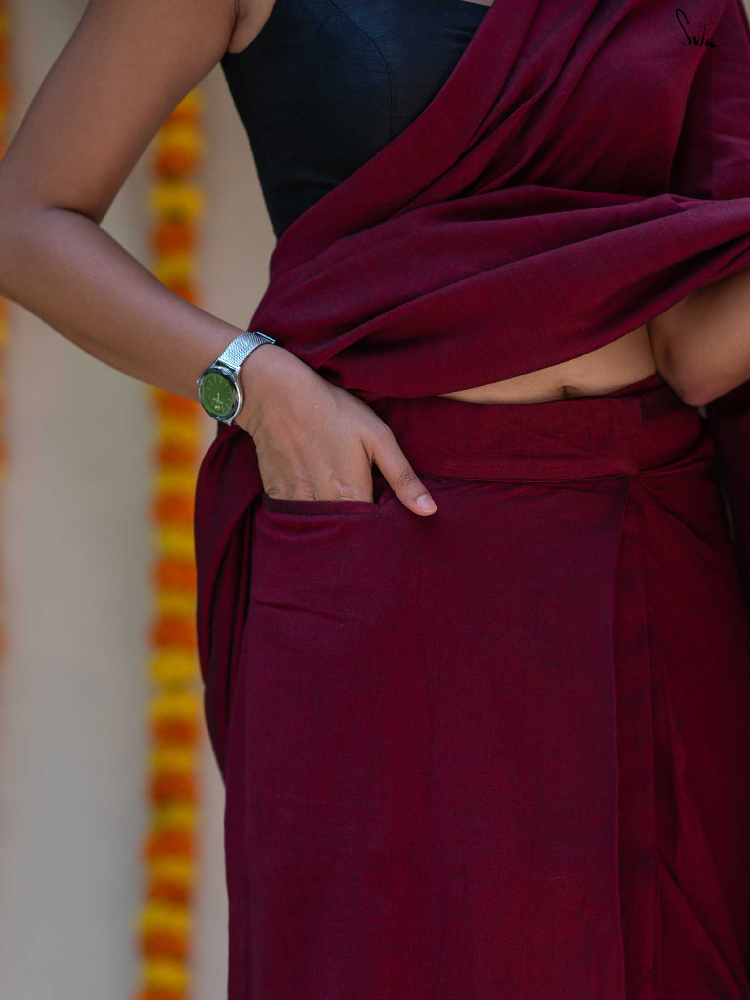 These ready-to-wear sarees feature attached underskirts and handy pockets. Simply slip it on and style it in three easy steps for a stunning look in just 30 seconds. Perfect for any occasion, these sarees combine traditional charm with modern functionality. Get ready to turn heads without the hassle.