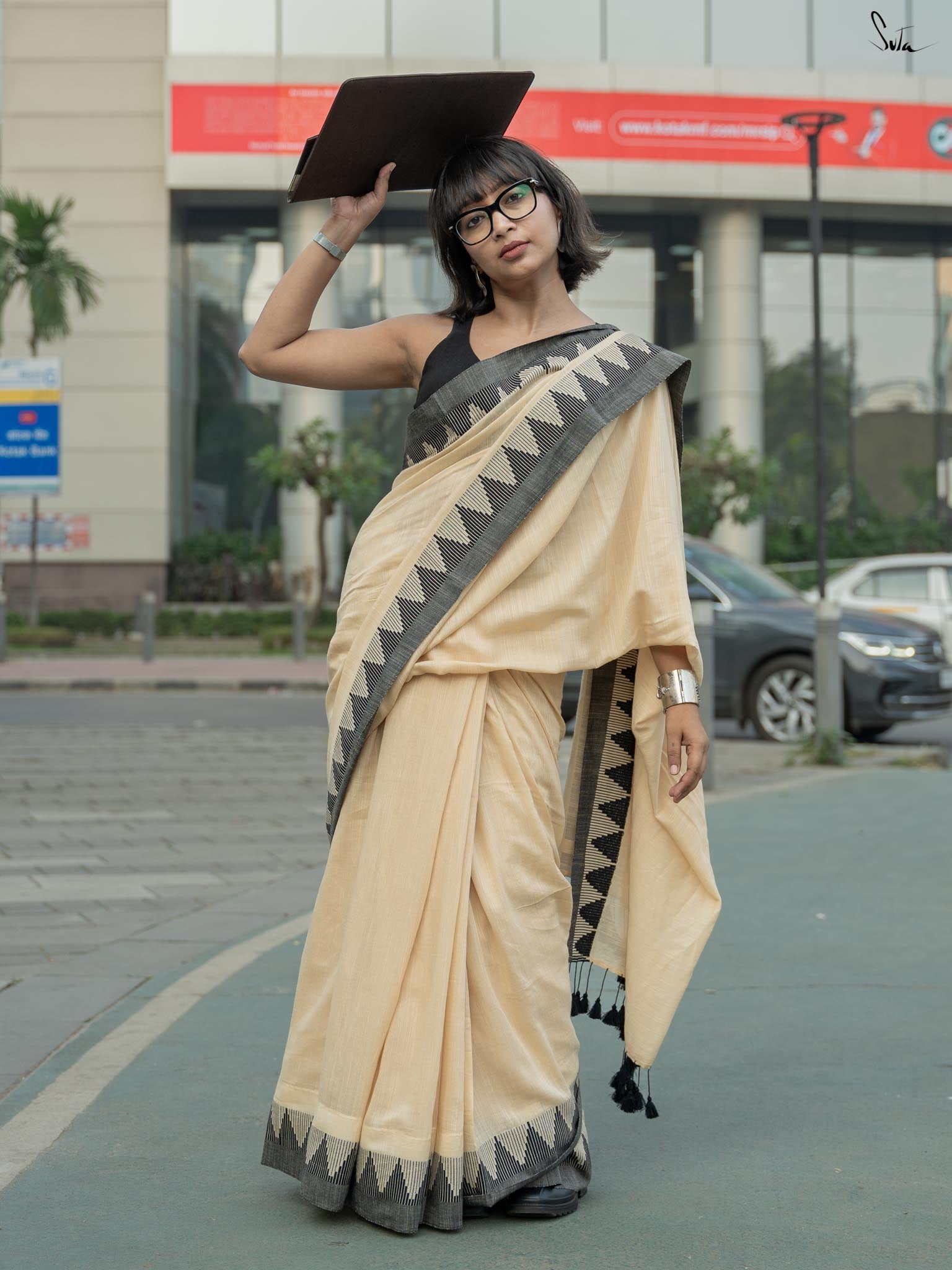 The Beige Bahaar saree is a graceful beige cotton slub piece, beautifully enhanced by a striking black temple border. Its sophisticated palette gives it a classic appeal that makes it perfect for both special occasions and daily wear. Drape yourself in this saree and let its simplicity bloom into a statement of effortless beauty!