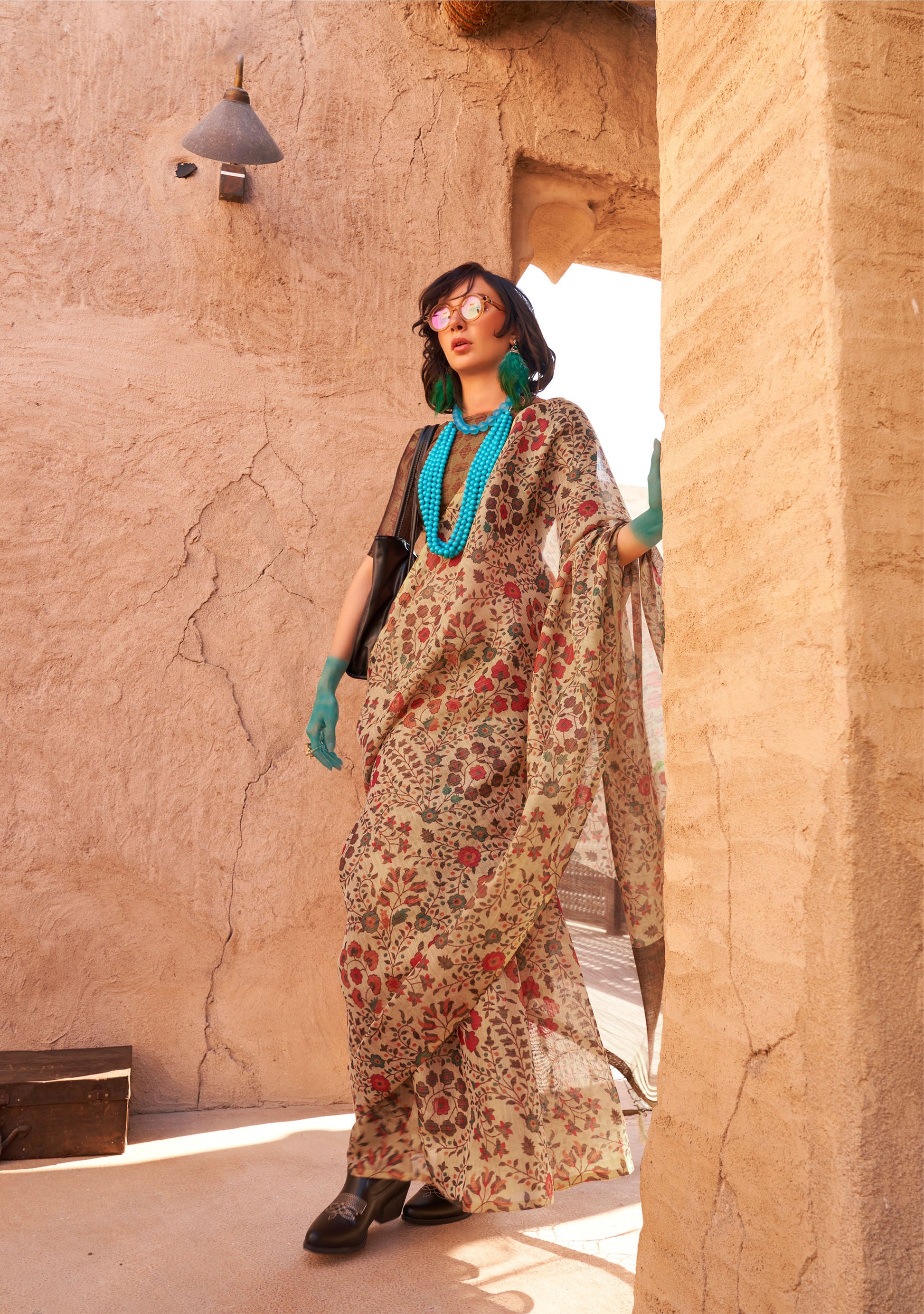 Does your wardrobe need more versatility? Then, check out this. Let your skin feel the refreshing touch as you adorn this superior-quality lightweight Saree to match the overall modest design.