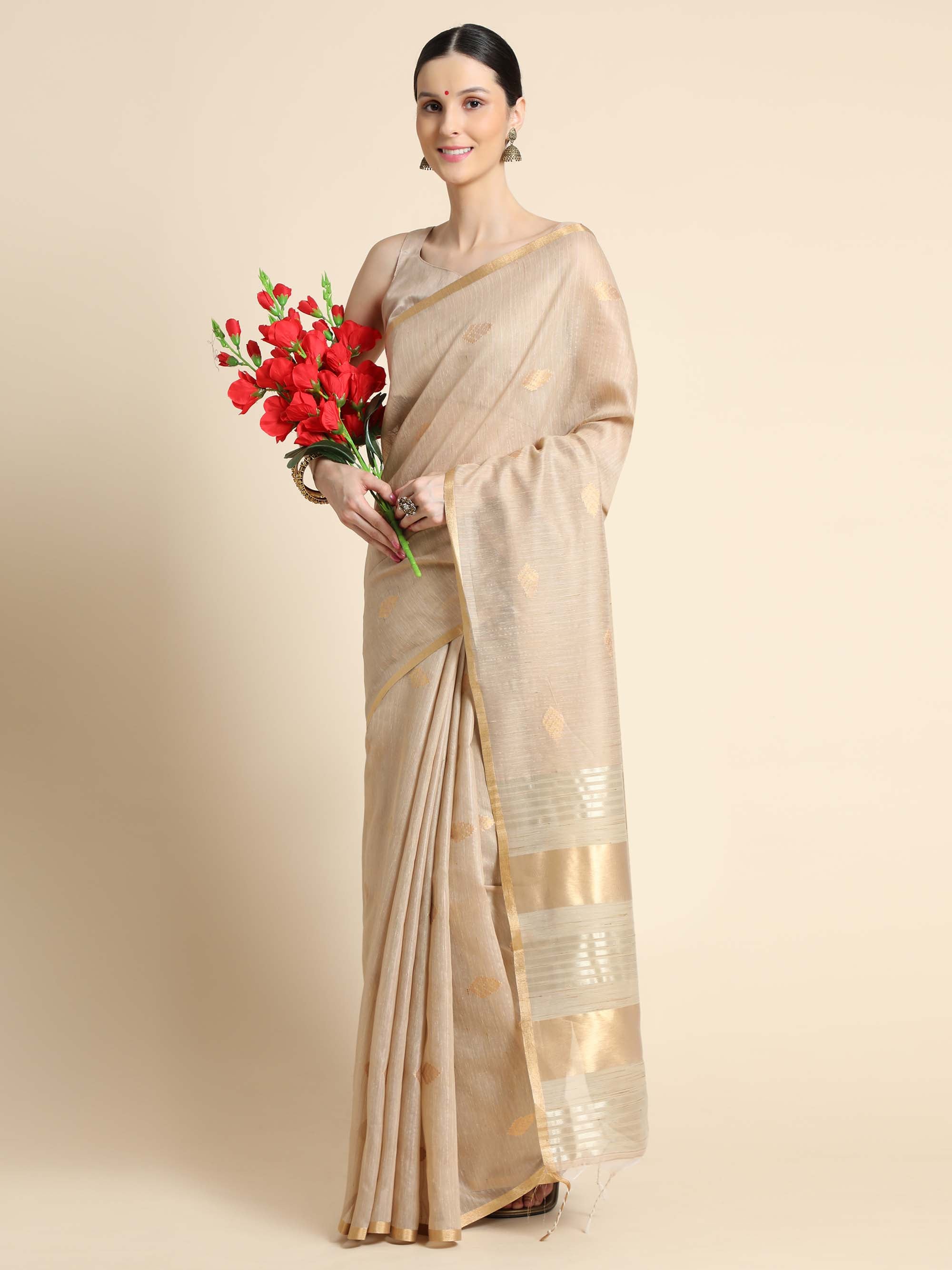 Beige Zari Woven Kanchi Cotton Saree
