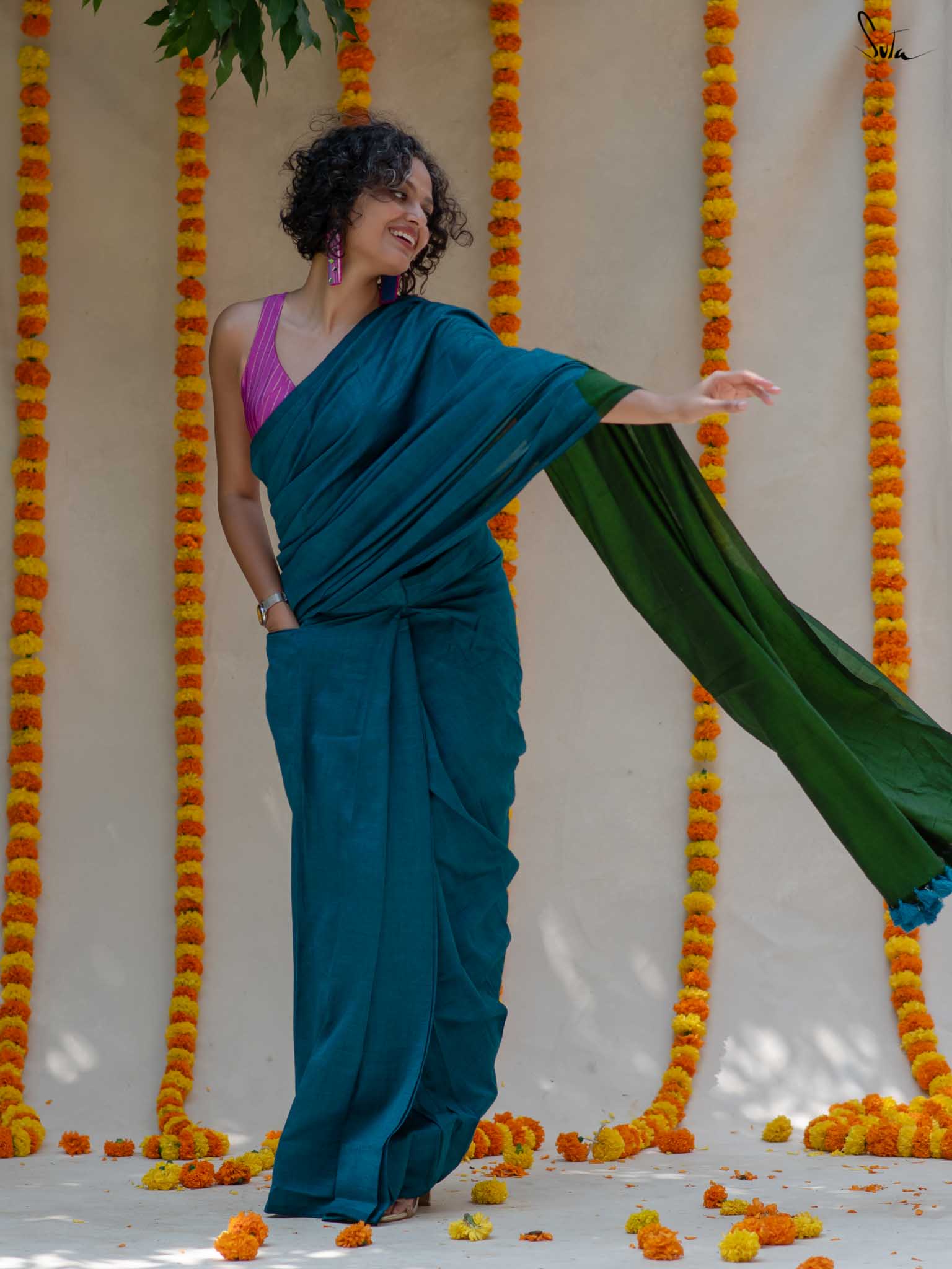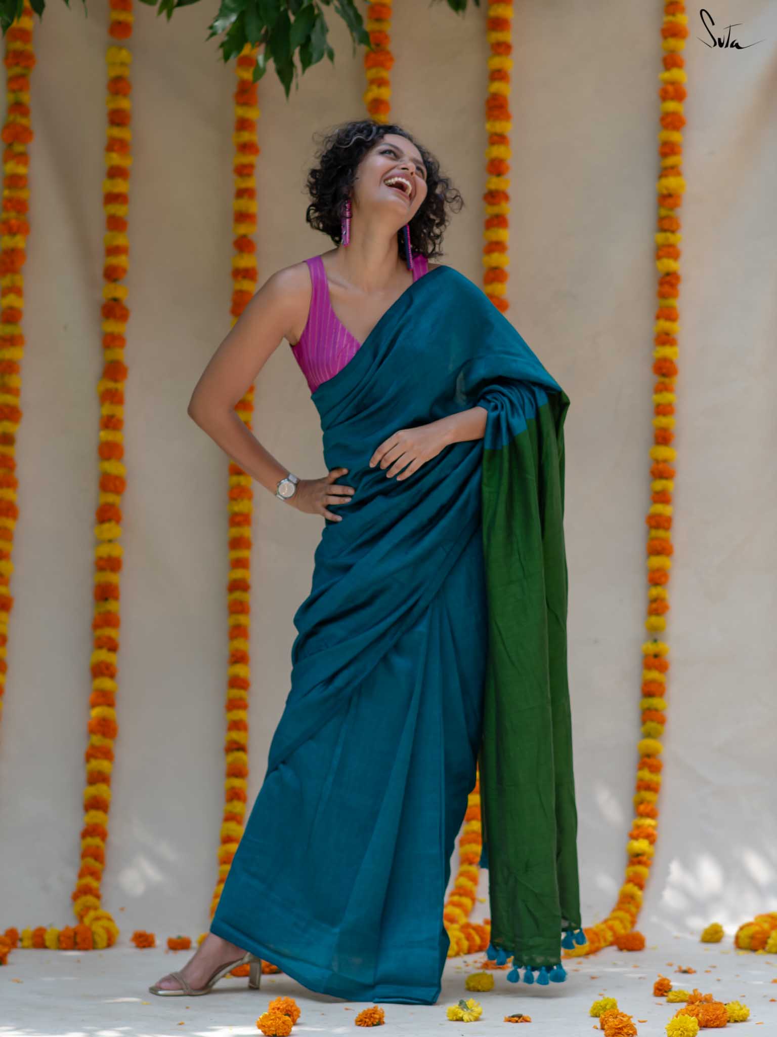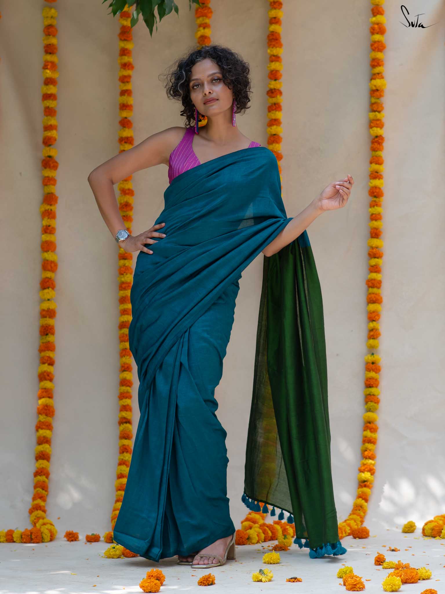 Cotton fabric dates back to some of the most ancient civilisations and it has a strong presence in the modern wardrobe as well. The softness and lightness of cotton combined with its strength and versatility makes it one of the most popular choices, especially for the Indian climate. We took this simple, elegant fabric and combined it with acrylic for that added sheen and voila! We love what we see and the saree falls so beautifully that it feels like second-skin!
