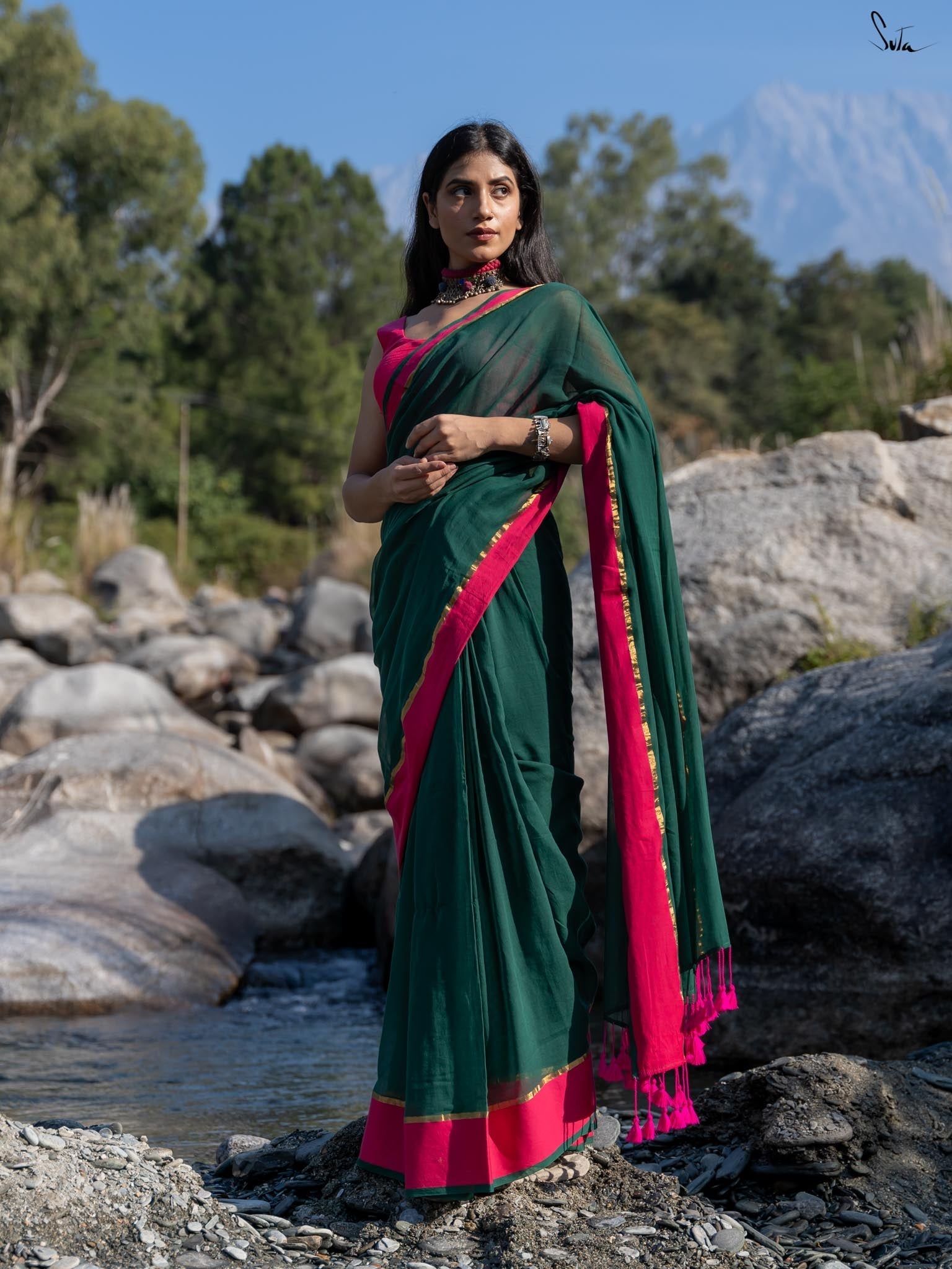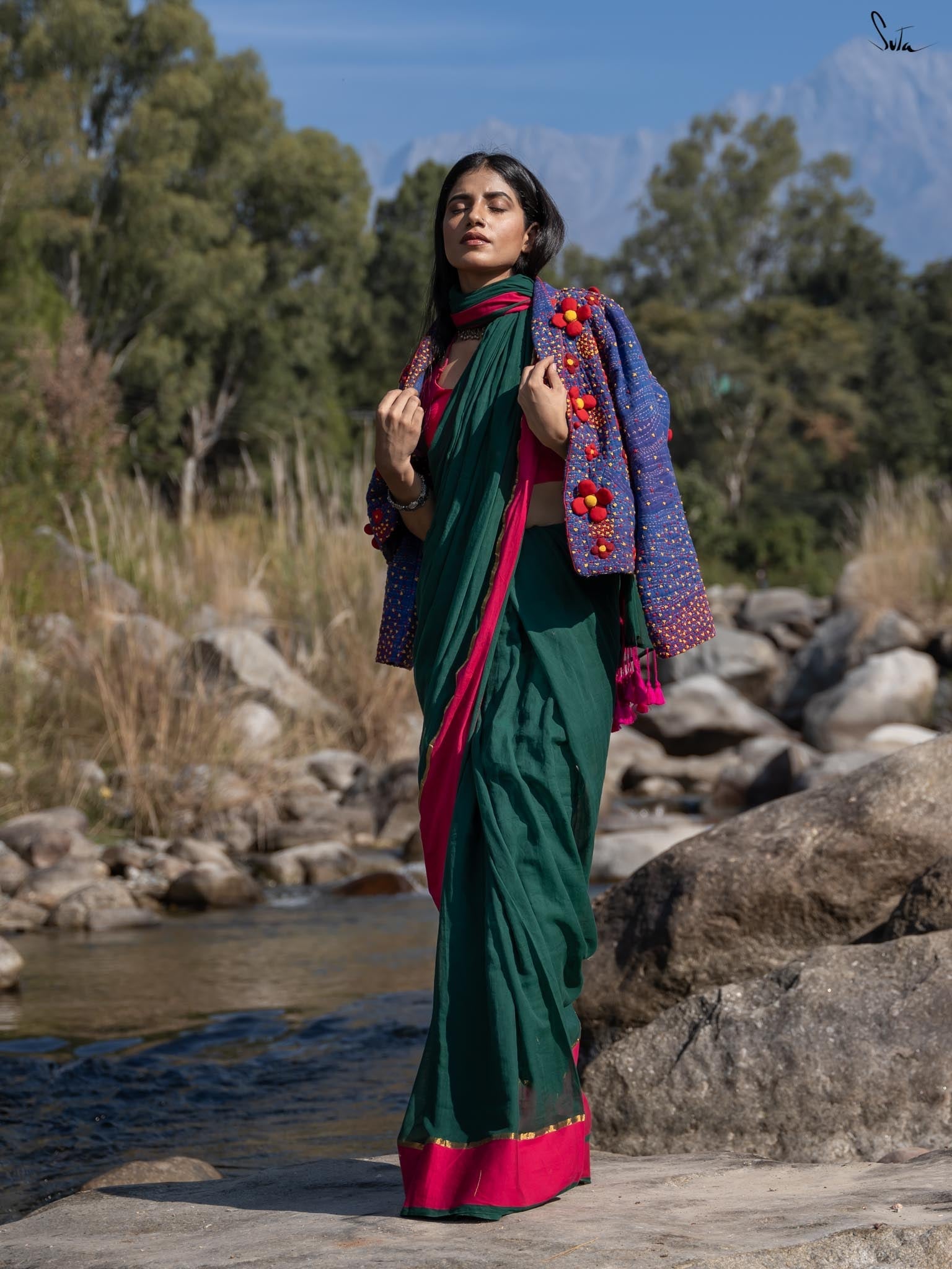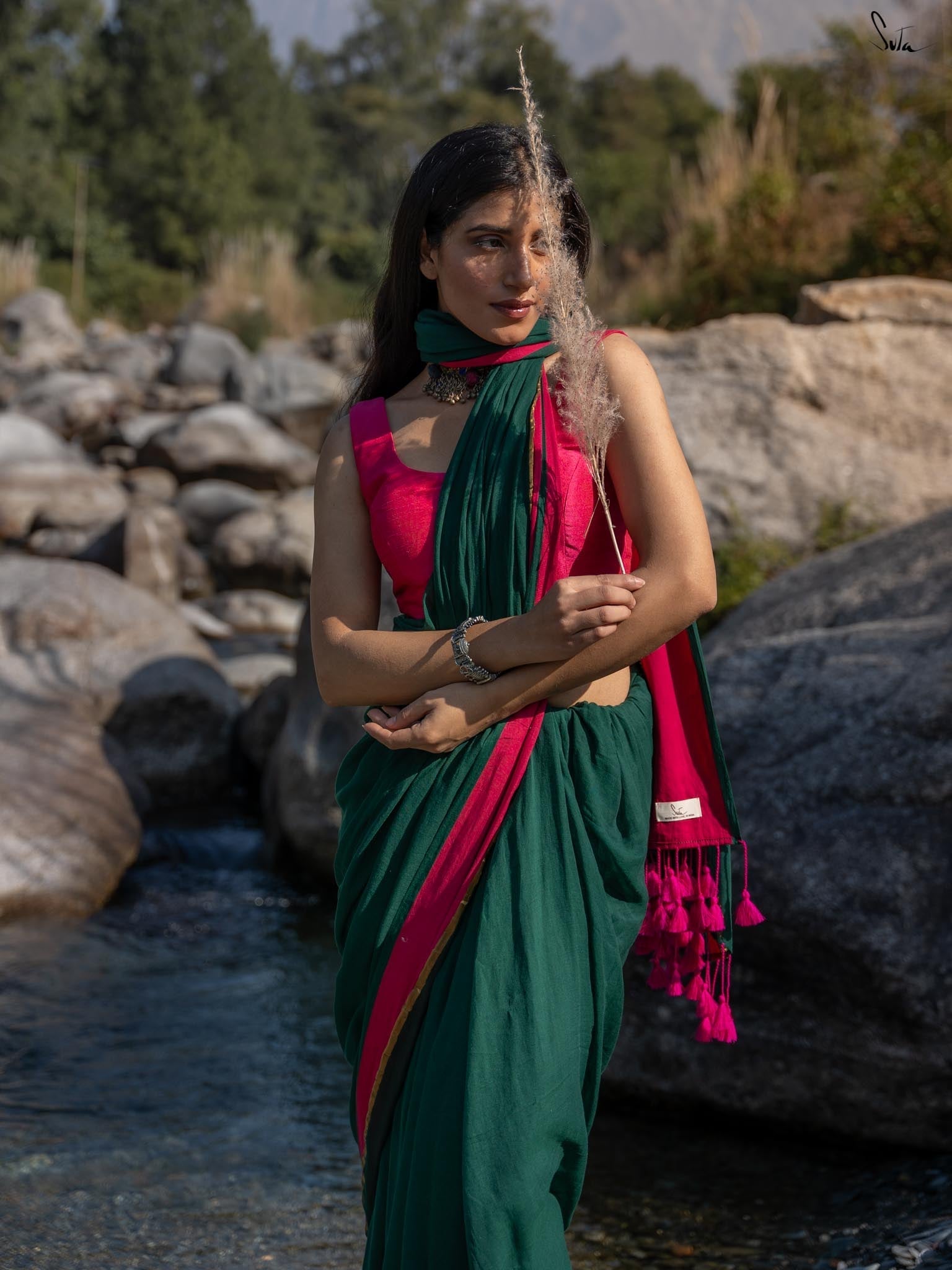 The word Betul translates into 'Maiden' and just like its name, the freshness of the saree describes nature's eternal bloom. A stunning work of art from the masterly artisans, who weave, stitch, and embroider magic with deep reverence and care, the saree reflects the harmonious relationship between art and nature. Wrap yourself in the radiant charm of nature with Betul, whose every fold whispers beauty!