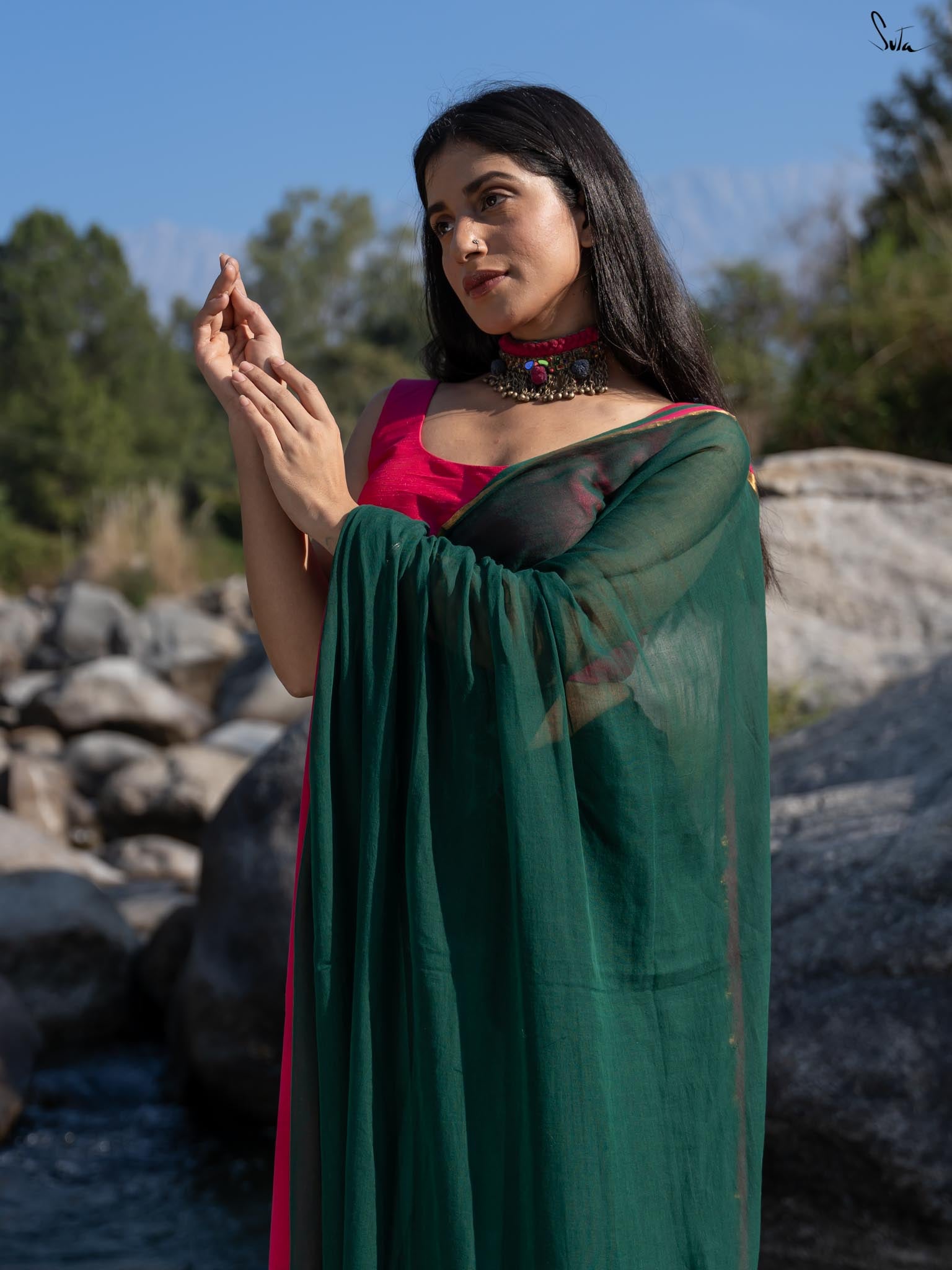 Blouse: The model is wearing XS size blouse called Chirmi