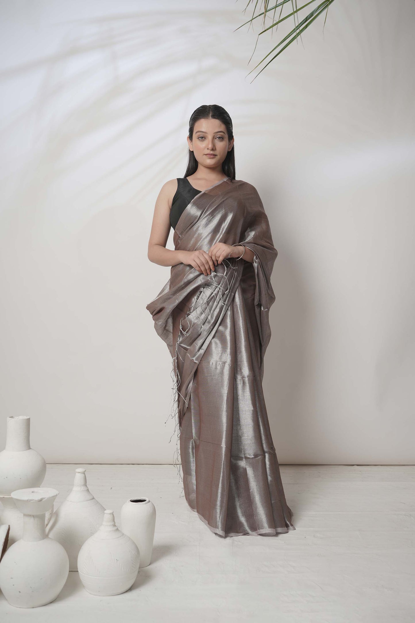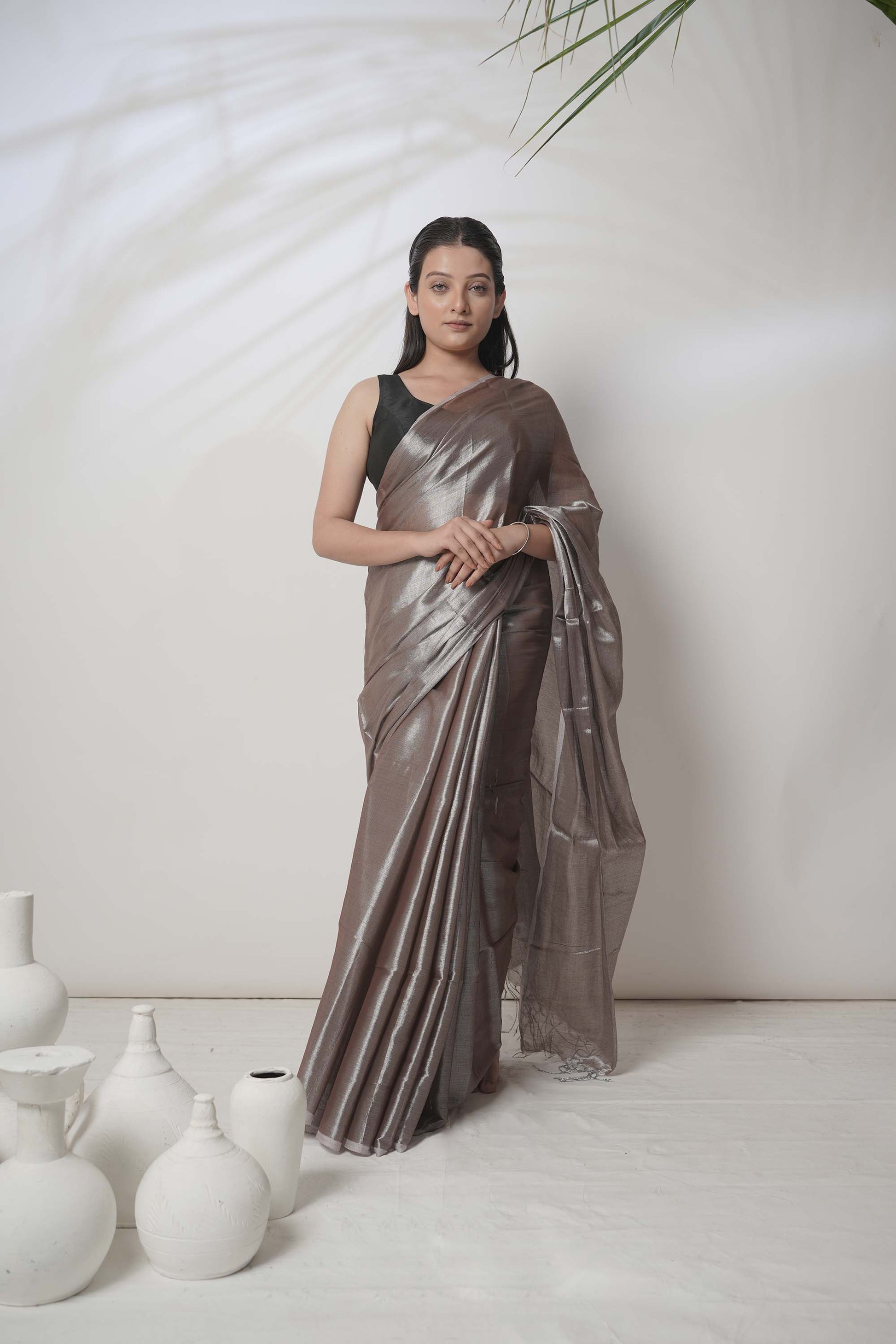 Bhavya | Pastel Coffee Handloom Tissue saree